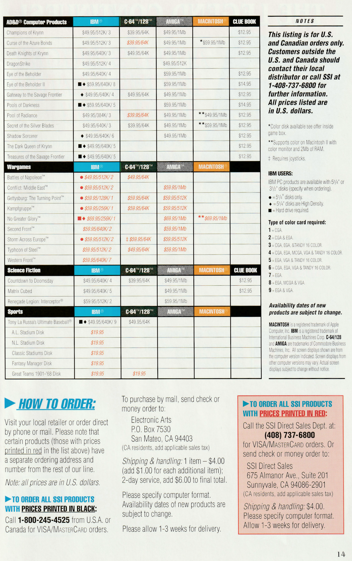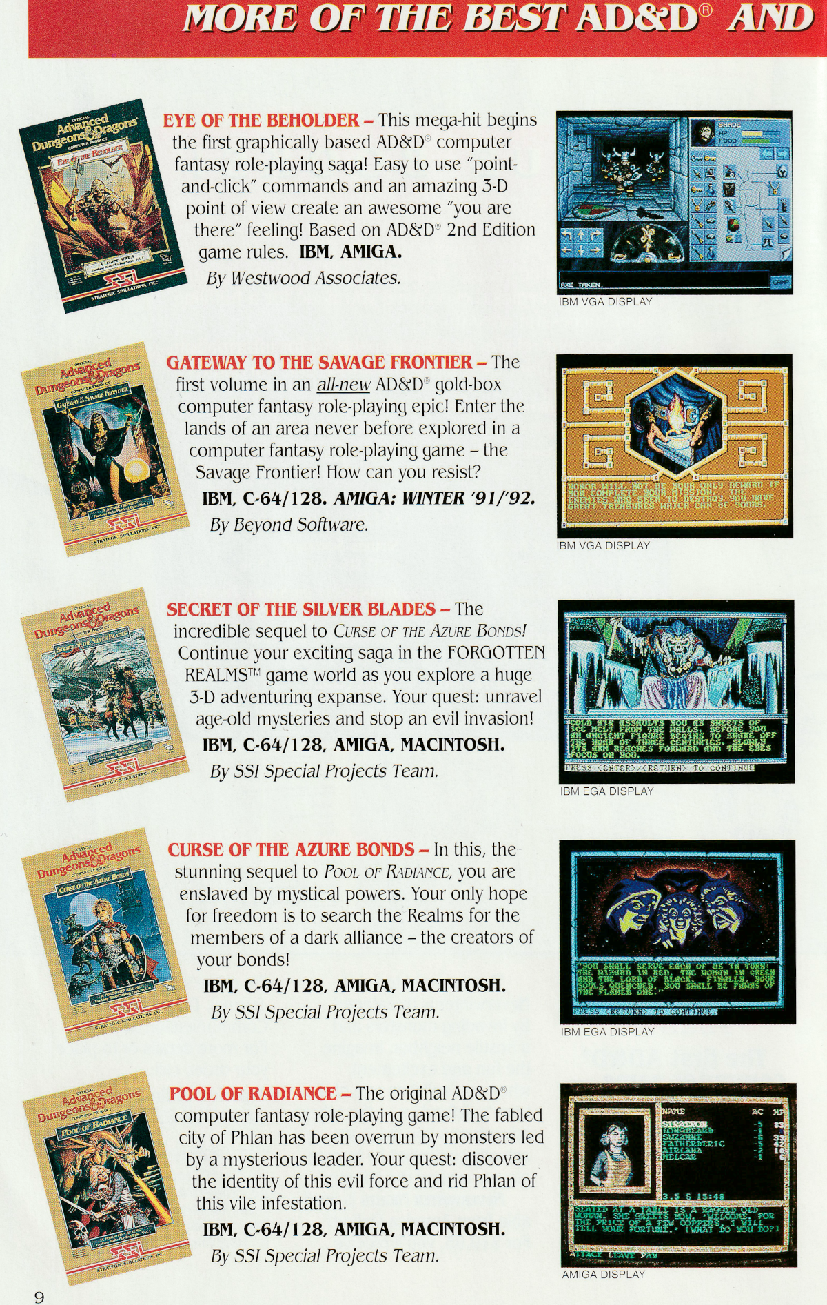 This was included with a copy Shadow Sorcerer I own but would have been bundled with any other 1992 release. I played Shadow Sorcerer so long ago that I don't remember much about it. I also played most of the "gold box" games in here with the same disclaimer. My only commentary on this catalog is the prices are substantially higher than they would be in a store, especially the C64/128 versions which would be heavily discounted by 1992.