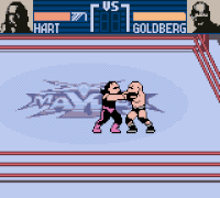 Here's a prime example of a pro-wrestling video game lagging the story lines - Bret Hart is in a WWF game 8 months after his un-amicable departure from the league. Yes of course, development probably started around the summer of 1997 so this is not surprising. I doubt anyone at the WWF thought to call Acclaim to get him pulled before it was released. He is missing from the previously mentioned Game Boy version though, possibly due to a shorter development cycle.