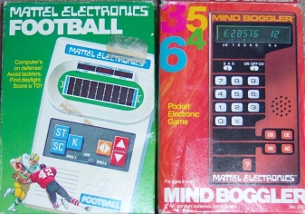 The next weekend I spotted an estate sale which I dropped in on. I found a few of those old Burger King glasses from the 80s (i.e. those Star Wars one) and a pair of original Mattel handhelds. The football game was actually brand new. OK, the box was a bit worn but it hadn't been opened. The Mind Boggler game was used but in good shape.