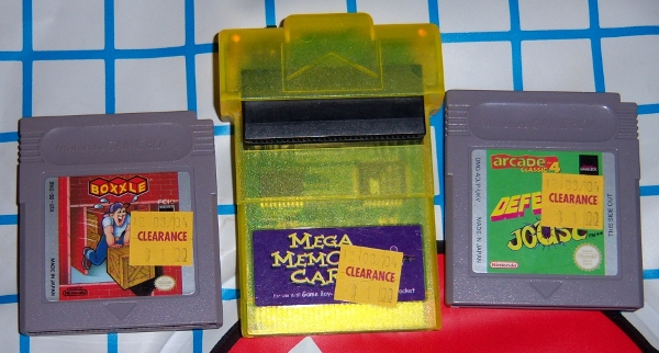 Boxxle, Arcade Classic 4, and Mega Memory Card for Game Boy ($1 each)