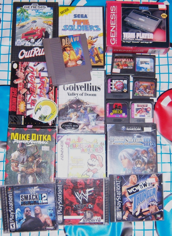 One Saturday I ran across a garage sale that was like being a kid in a candy store. Someone's game collection had grown too large so he was selling off a ton of games. Of course being a game collector he knew what games were worth so the prices were around eBay range. There were some good deals there though - when all was said and done I walked away with the games pictured to the left for $15.