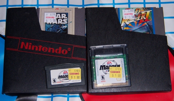 Star Wars and Rad Racer II for NES, Madden 2003 for GBA, Madden 2002 for Game Boy Color ($10)