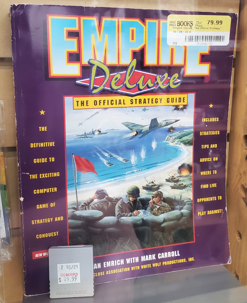 Last year I started this section with a visit to Half Price Books. They used to have good deals, now... Yeah, that is an extremely beat-up copy of the Empire Deluxe hint book for $79.99. Is it rare? Maybe. Does GameFAQs still exist? [checks] Yes. Also, loose Gamecube memory card for $19.99.