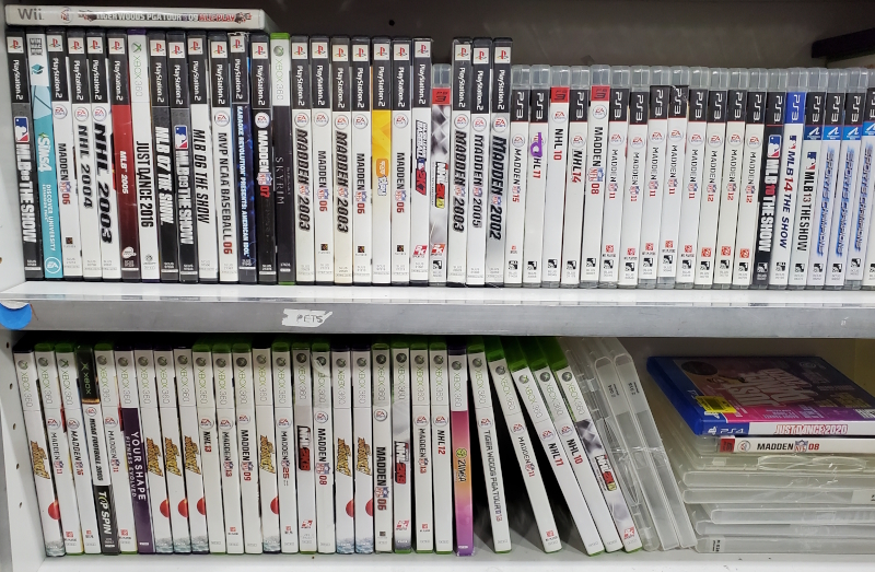 I've made a lot of trips to Goodwill this year because I'm trying to de-clutter. The rule is I can't come back with more than what I brought and I've been good about that. One thing I'm not coming back with for sure is a video game. It is just a sea of Madden and fitness games. There are some other old sports titles and oddball games, nothing worth more than $1.