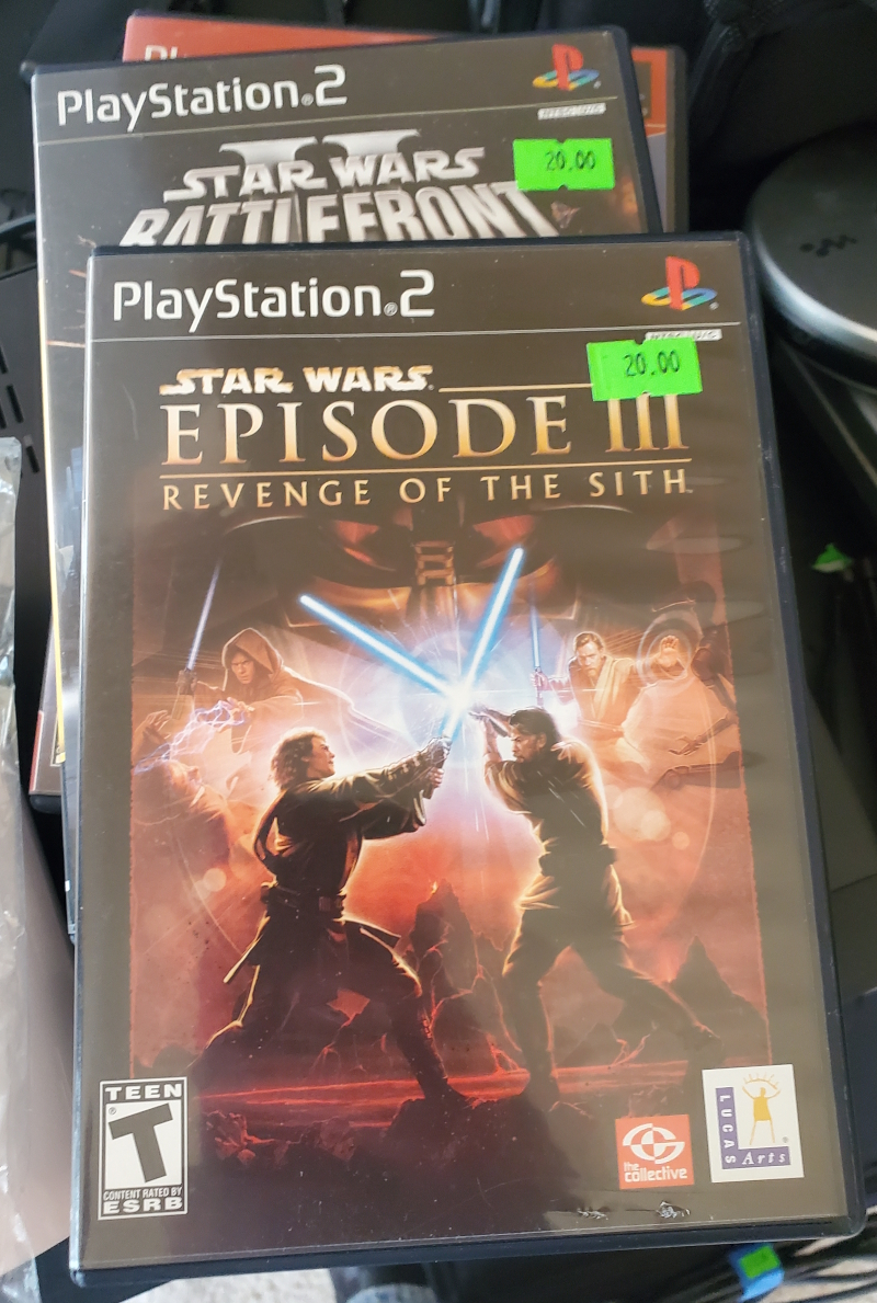 I haven't gone to many estate sales this year. There are plenty in the area but, as is the trend, the organizers think they're sitting on mountains of treasure. Case in point, Star Wars Episode III for the PlayStation 2 priced at $20. There are ~100,000 copies of this game in clearance bins at the Midwest Gaming Classic. The Lego version is vastly more fun, no one wants the non-Lego version. For Battlefront II that's about the going rate though.