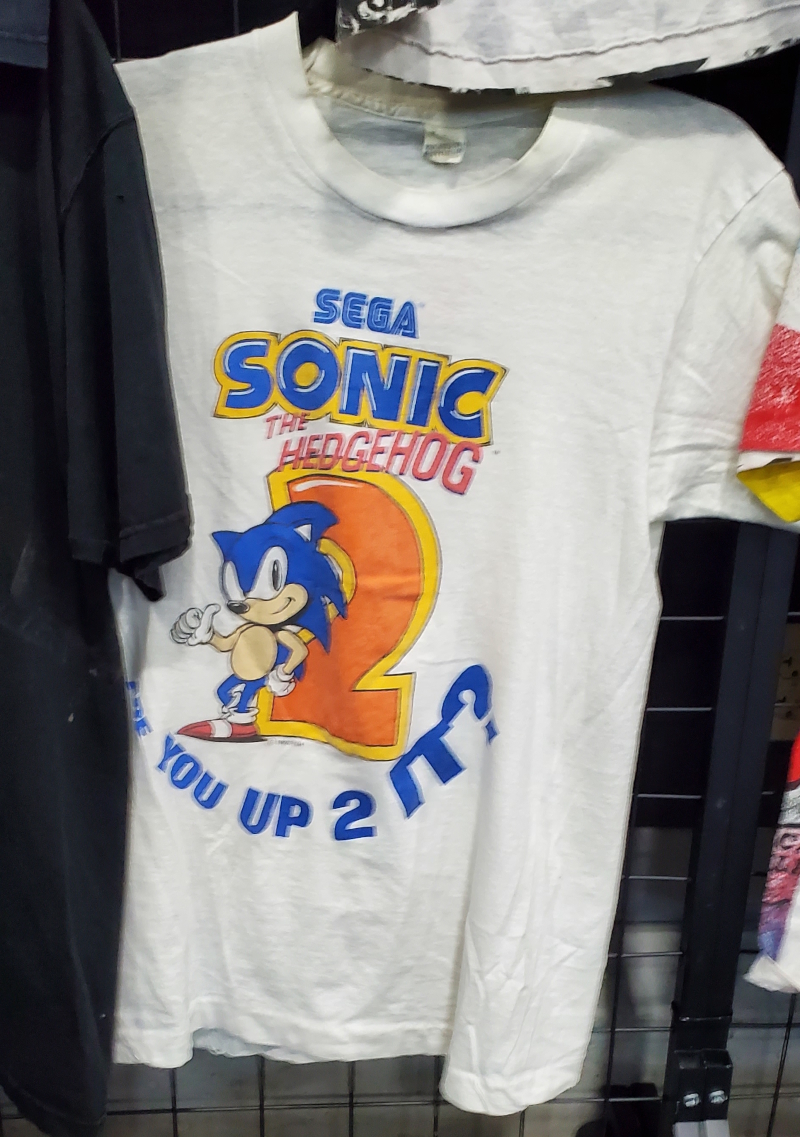 Here's someone selling a Sonic 2 t-shirt that I gave away just over 30 years ago. Not that specific shirt, but maybe. I believe it was a pre-order bonus, but might have been a giveaway at launch. I don't recall for sure. Pre-orders weren't as common then so if our store got 20 of those shirts we gave them to the first 20 people who bought the game, pre-order or not. This previously free item is now being sold for low 3 figures.