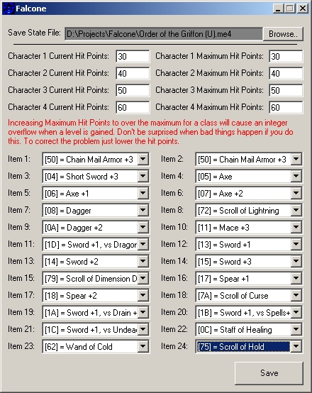 Falcone: Hit Point & Inventory Editor for Order of the Griffon